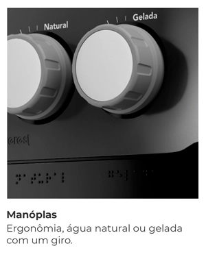 Modelo compacto com água gelada e natural, que combina com diferentes estilos de cozinha e decoração.